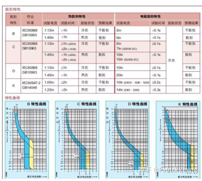![N]MZ~64TLC4CNGWO4X_]U(I.png](upload/2019121450647185.png) 圖2:MCB的脫扣特性和脫扣倍率 從表中我們看到,C型在熱態(tài)下的短路保護倍率為10~15倍,D型在熱態(tài)下的短路保護倍率為20倍。